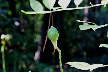 | トラノオスズカケ 絶滅危惧種に指定されているゴマノハグサ科の半常緑の植物で、九州、四国地方に見られるとのことですが、ここ自然教育園では50年ぶりに開花が確認されたとのことです。 |