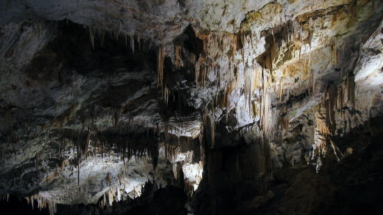 | ポストイナ鍾乳洞 ブレッドからバスで1時間半くらいでポストイナに着きます。この鍾乳洞は中世の時代にその所在が近隣の住民に知られていたとのことですが、19世紀のはじめに調査隊が入洞。その大きさが知らされることによってスロベニア有数の観光地となったようです。 鍾乳洞に入るのは時間予約制で我々ツアーのグループは午後2時からの入場とのことで途中昼食をとってから入口付近で時間が来るのを待ちます。鍾乳洞の中は気温10℃以下になるとのことで皆寒さ対策に一枚余計に羽織っていますが、外は25℃近くもあり待っている列で汗だくになりそうです。 この鍾乳洞全長はなんと25kmほどあるようですが、観光に利用されているのはそのうちの約5km。このうち、入口と出口側の2kmはトロッコ列車を利用し歩くのは1kmだけです。 |