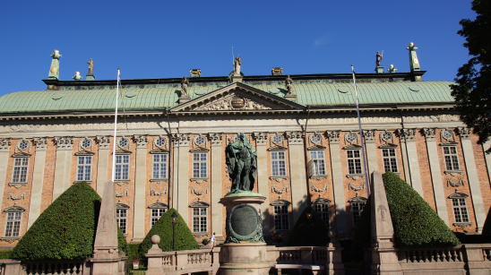 王宮 16世紀から現在に至るまでスウェーデン王室がここを居城として利用していましたが現在は国王の執務室、迎賓館として利用されているとのことです。、王宮前の広場では衛兵の交代式が行われているとのことですが、残念なことに実施日ではなかったため見ることができませんでした。 |
