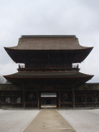 | 山門(中央)と禅堂(左)そして大庫裏(右) 山門は寛永21年(1645年)に建立されましたがその後焼失し、現在の建物は文政3年(1820年)に建立されたもので、平成9年(1997年)に国宝に指定されています。 |