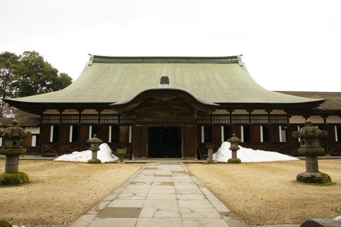 | 法堂(国宝) 明暦3年(1657年)の建立で、仏殿同様に総檜造り。内陣には前田利長公の位牌が安置されています。 |