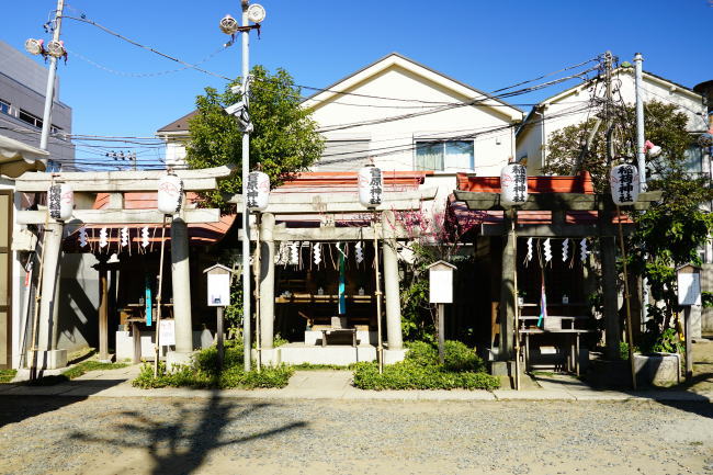 左から福徳稲荷、菅原神社、稲荷神社 |