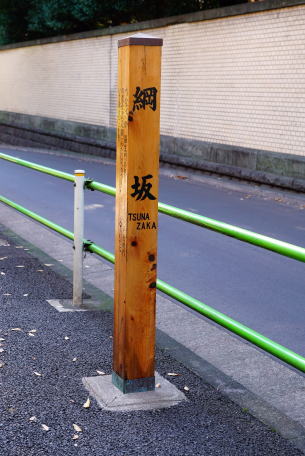 平安時代の武将であった渡辺綱がこの地付近で生まれたとの言伝えが残る坂ですが、名前の由来には諸説色々あるようです。