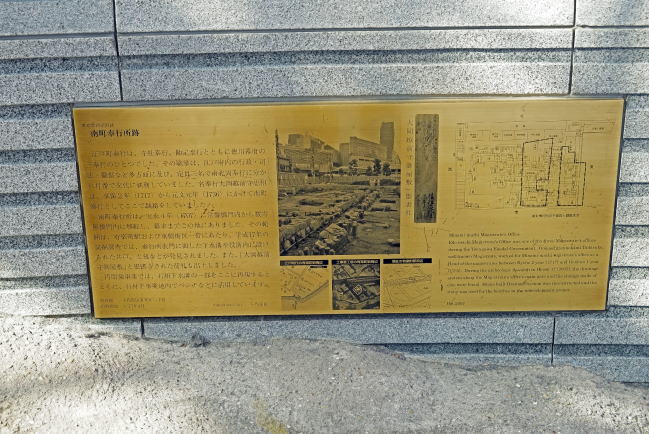 | 南町奉行所跡 徳川幕府は江戸を治めるため寺社奉行、勘定奉行そして町奉行の三奉行を設けましたが、このうち直接江戸市民に直接関係するのが町奉行でした。町奉行は旗本から任命され、江戸府内の行政、司法、警察等の業務に当たり、南と北の町奉行所が交代(月番)で任に当たっていました。 南町奉行所は当初常盤橋御門内にありましたがその後数寄屋橋門内に移転して幕末まで置かれていました。現在の有楽町駅中央口の地下に下りる階段の裏側にその記念プレートが置かれています。 |