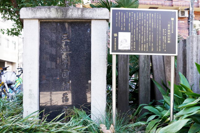 三遊亭園朝旧居跡 初代三遊亭圓朝(天保10(1839)年~明治33(1900)年)は江戸時代末期から明治にかけて活躍した落語家で、江戸の落語家の大名跡であり、三遊派の宗家で、落語中興の祖として有名な人です。 圓朝の落語は、滑稽噺よりも人情噺や怪談噺が多く、その上手さに他の落語家より嫉妬され妨害を受けたこともあると伝えられています。 代表作には「塩原太助一代記」、「怪談牡丹灯籠」、「真景累ヶ淵」や、現在でも古典落語の名作として口演される「文七元結」、「芝浜】などがあります。 旧居跡は、現在花園公園となっており、圓朝は明治21(1888)年から明治28(1895)年までこの地に住んでいました。 (所在地:新宿区新宿1-21) |