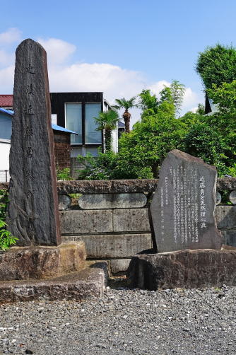 | 近藤勇の生家跡 龍源寺から人見街道を西に約300m歩いたところに、新撰組の局長として知られる近藤勇の生家があります。近藤勇は天保5年(1834年)に、龍源寺の檀家であった宮川家の三男勝五郎として生まれ、15歳の時に天然理心流三代目宗家の近藤周助の養子となり、近藤姓を名乗っています。生家は当時敷地が約7000㎡ある富農でしたが、現在は産湯を使った井戸(下左の写真)と昭和の初期に建立された近藤神社(下右の写真)が残されています。 (所在地:調布市野水1-6-25) |