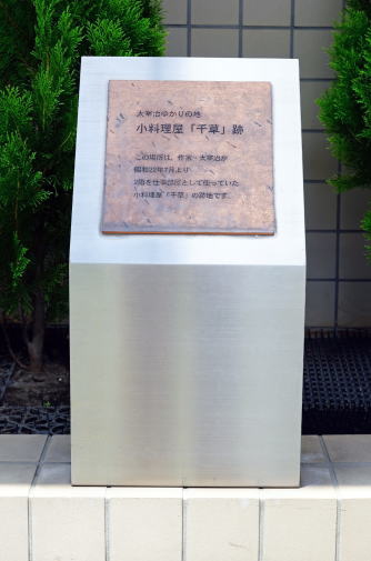 | 太宰治文学サロン 三鷹に住んでいた太宰治の一家が利用していた伊勢元酒店があったところで、婦人公論の昭和17年(1942年)2月号で発表された短編小説「十二月八日」にも登場する酒店でした。酒店の跡は文学サロンとして平成20年(2008年)に開設されており、直筆原稿の複製など太宰治に関係する貴重な資料が展示されています。 (所在地:三鷹市下連雀3-16-14) |