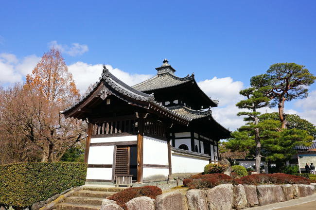 六波羅門 境内南側にある鎌倉時代前期に建てられた門で、重要文化財に指定されており、六波羅探題にあった門を移築したことからこの名前が付けられました。(2014.12.01撮影) 六波羅探題とは鎌倉幕府の職名のひとつで、承久の乱の後に御家人の統率、洛中の警備にあたっていた京都守護を改組して京都六波羅の北と南に設置し、京の警備・朝廷の監視・軍事行動などを行わせた組織です。 |