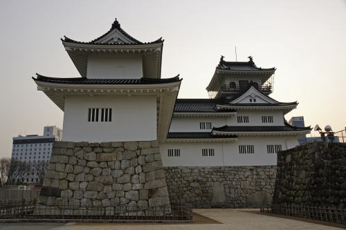 | 富山城 天文12年(1543年)頃に神保氏によって築城されたといわれる富山城、神通川の流れを利用して水に浮いたように見えることから「浮城」とも呼ばれていました。天正10年(1582年)3月神保氏に代わって佐々氏が城を治めるものの本能寺の変後の天正13年(1583年)に豊臣秀吉の軍勢に攻め込まれて壊されましたが、徳川時代に入ってから加賀前田藩の分家として修復され富山藩10万石の居城となりました。 明治に入ってからは廃藩置県により廃城となるところを県庁舎として利用されたため破却を免れるものの昭和5年(1930年)の火災で焼失しました。現在の模擬天守は昭和29年(1954年)に産業博覧会にあわせて建築され、現在は富山城址公園内の市の郷土博物館として利用されています。 |