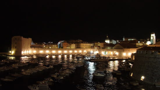 | 午後6時過ぎドゥブロヴニク到着です。 今夜はドゥブロヴニク旧市街の港のそばのレストランで夕食です。夕食が終わってわずかな時間ですが、夜の旧港の風景を撮影。 | |||||||||||||