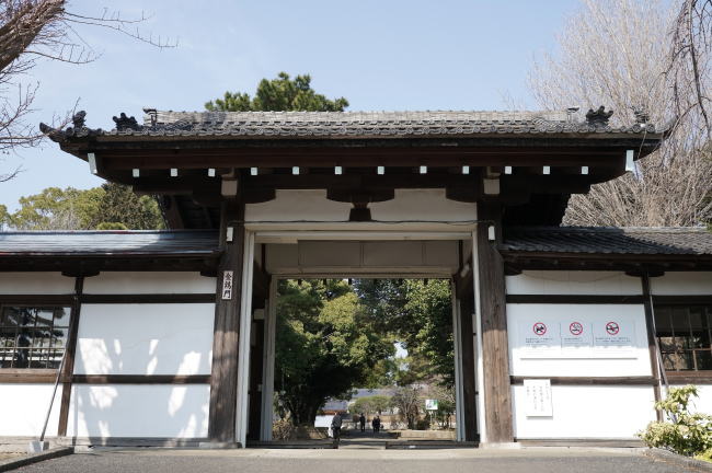 向唐門 大正14(1925)年に建てられた向唐門(むかいからもん)は、切妻造、檜皮葺の四脚門で、前後に唐破風を付けており、普段は開扉されず、禅師の入山式や特別な行事の際のみに開扉されます。 (登録有形文化財) |