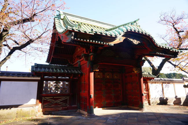 | 厳雄院殿霊廟勅額門(下左)と常憲院殿霊廟勅額門(下右) 勅額門とは天皇が国内の寺院に特に与える直筆の書で記された寺社額のある門のことをいい、この勅額門はともに四脚門、切妻造、前後軒唐破風付、銅瓦葺で造られています。 左の厳雄院殿霊廟勅額門はわずか10歳で第4代将軍の座に就いた徳川家綱の霊廟で延宝9年(1681年)に建てられたものでり、右の常憲院殿霊廟勅額門は前半の治政が「天和の治」と讃えられた善政でしたが、後半には「生類憐みの令」で知られる悪政を行ったことで有名な5代将軍徳川綱吉の霊廟で宝永6年(1709年)に建てられたものですが、霊廟は明治維新後に解体されたり太平洋戦争で焼失するなどしてその多くが無くなりましたが、この勅額門は難を逃れた貴重な遺構で、ともに国の重要文化財に指定されています。 |