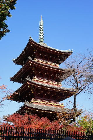 | 寛永寺 徳川将軍家の菩提寺である天台宗関東総本山の東叡山寛永寺、開基は三代将軍徳川家光、初代住職は天海で、徳川歴代将軍のうち4代家綱、5代綱吉、8代吉宗、10代家治、11代家斉、13代家定の6人が眠っています。 徳川家の菩提寺としては明徳4年(1393年)に創建された芝増上寺がありましたが、寛永寺は徳川家により新たに建立された寺院で、天海の発願により2代将軍秀忠が当時この地にあった伊勢津藩藤堂家、弘前藩津軽家、越後村上藩堀家の下屋敷を収公して広大な敷地を天海に与えて建立されたもので、創建の年の年号である「寛永寺」、東の比叡山という意味で「東叡山」と名付けたようです。寛永寺の伽藍は江戸時代の末期には30万坪あったといわれ、今の上野公園の2倍もの面積が寛永寺の境内となっていました。 寺の伽藍は幕末の上野戦争の戦場となり、根本中堂をはじめ主要な堂宇が焼失し、壊滅的な打撃を受けました。明治維新後には境内地が没収され、公園用地に指定されるなどして廃寺状態となりましたが明治8年(1875年)にさいほっそくし、川越喜多院の本堂を移築して本堂として復興しました。 |