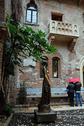 | 11時半にウルビーノを出発、ヴェローナに向かいます。ヴェローナまでは約300km途中で昼食をとり午後5時過ぎにヴェローナに到着です。雨はまだやみそうにもありません。 ヴェローナ ユネスコの世界遺産に「ヴェローナ市街」として登録されているヴェローナ、3度目の訪問ですが雨の日に訪れるのはこれが初めて、雨に加えて時間も5時過ぎ、撮影してもいい色が出そうにもありません。撮影意欲が減退します。 |