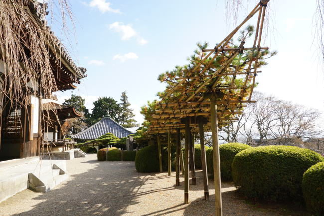 | 遊龍の松 日本一の松といわれ国の天然記念物に指定されているる樹齢600年以上の五葉松で、高さはありませんが幹が横に這うように伸びており、一時期50mにも伸びたこともあるものの松食い虫の影響を受け一部を伐採したため現在は37mの長さとなっています。 |